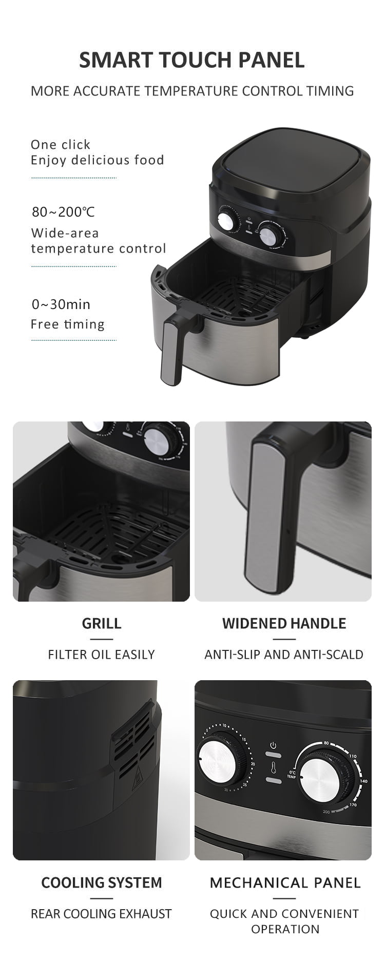 Fryer Yyzg-550s 5.5L هو جهاز مطبخ مرن مصمم للطبخ الأخضر والسهل. من خلال إدارة المقبض السالح للاستخدام ، يعد التأقلم مع إعدادات درجة الحرارة والوقت نسيمًا ، مع التأكد من إدارة فريدة من نوعها على نظام الطهي. لم تعد اللوحة الميكانيكية تبسيط العملية فحسب ، بل تتضمن بالإضافة إلى ذلك سلامة ارتفاع درجة الحرارة من أجل السلامة التي جلبت مدة الاستخدام. تتيح خاصية التوقيت غير المنقوشة من 0 إلى 30 دقيقة تخصيص مثيلات الخبز ، والتموين في الكثير من الوصفات. تتيح أرضية الطهي الرائعة غير اللاصقة تنظيفًا سلسًا ، في حين أن الثمانية من القوائم الذكية المدمجة تنقلب